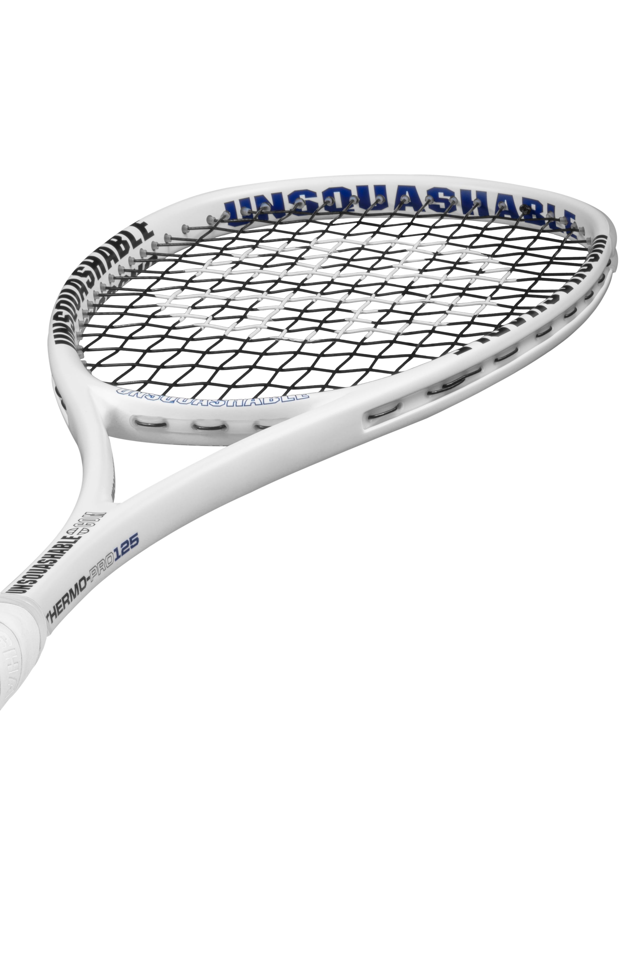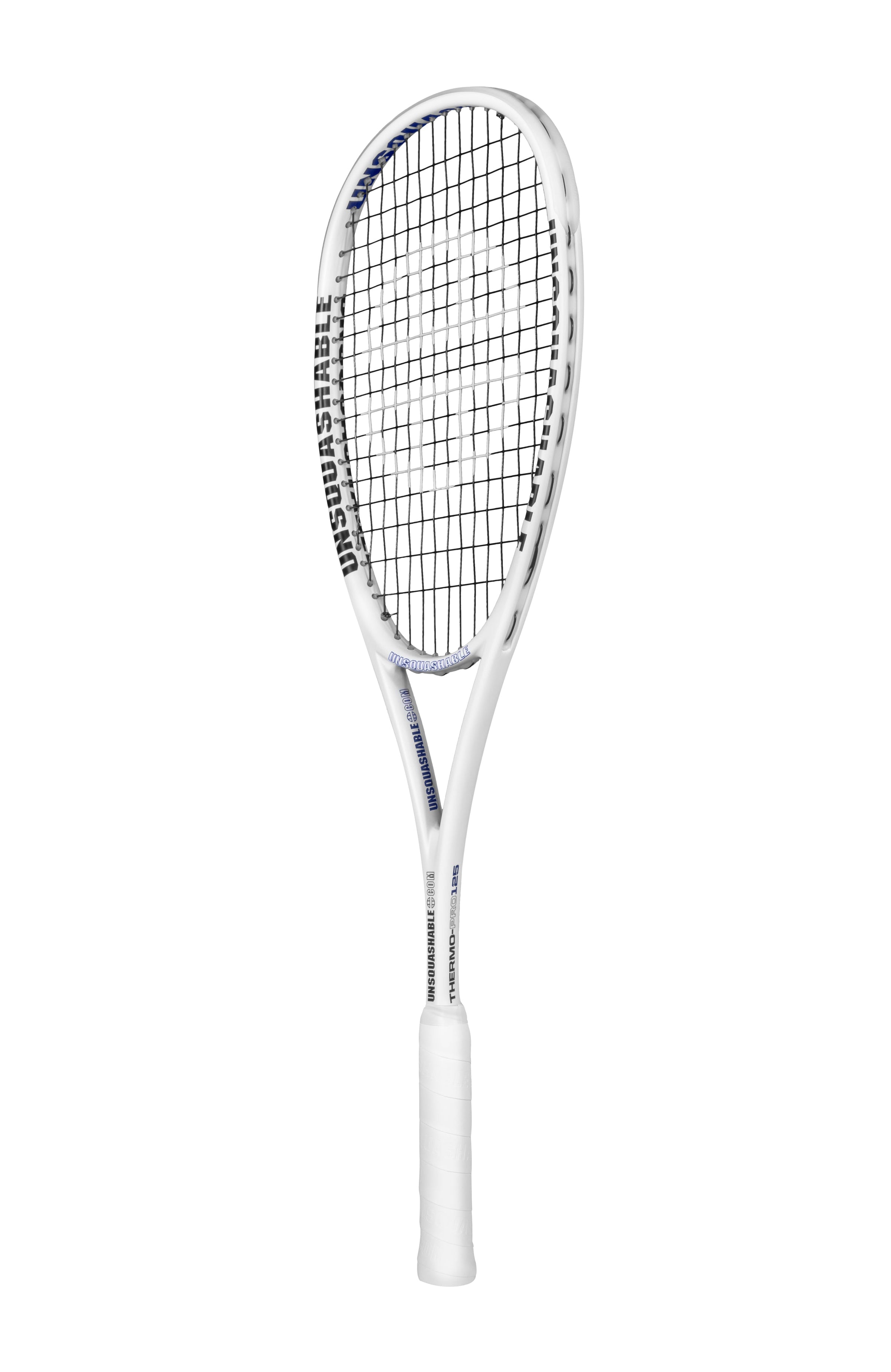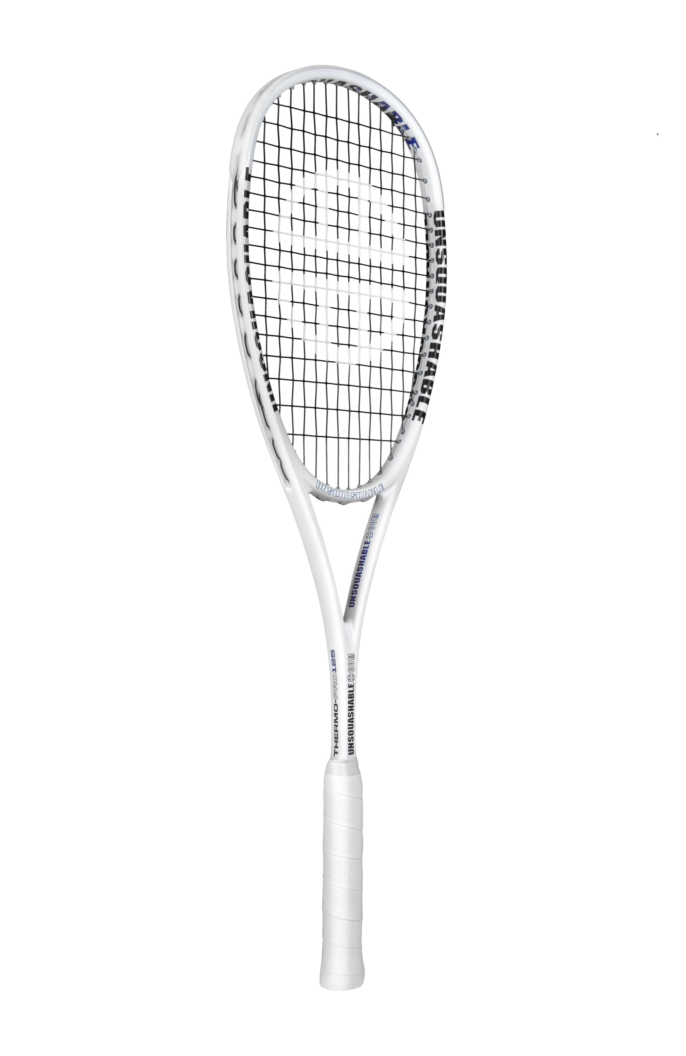 Our UNSQUASHABLE THERMO-PRO 125 Squash Racket weighs 125 grams and combines a Classic 'Isometric' headshape and ThermoCarbon™ Graphite construction to offer headlight manoeuvrability and control for players of all levels.